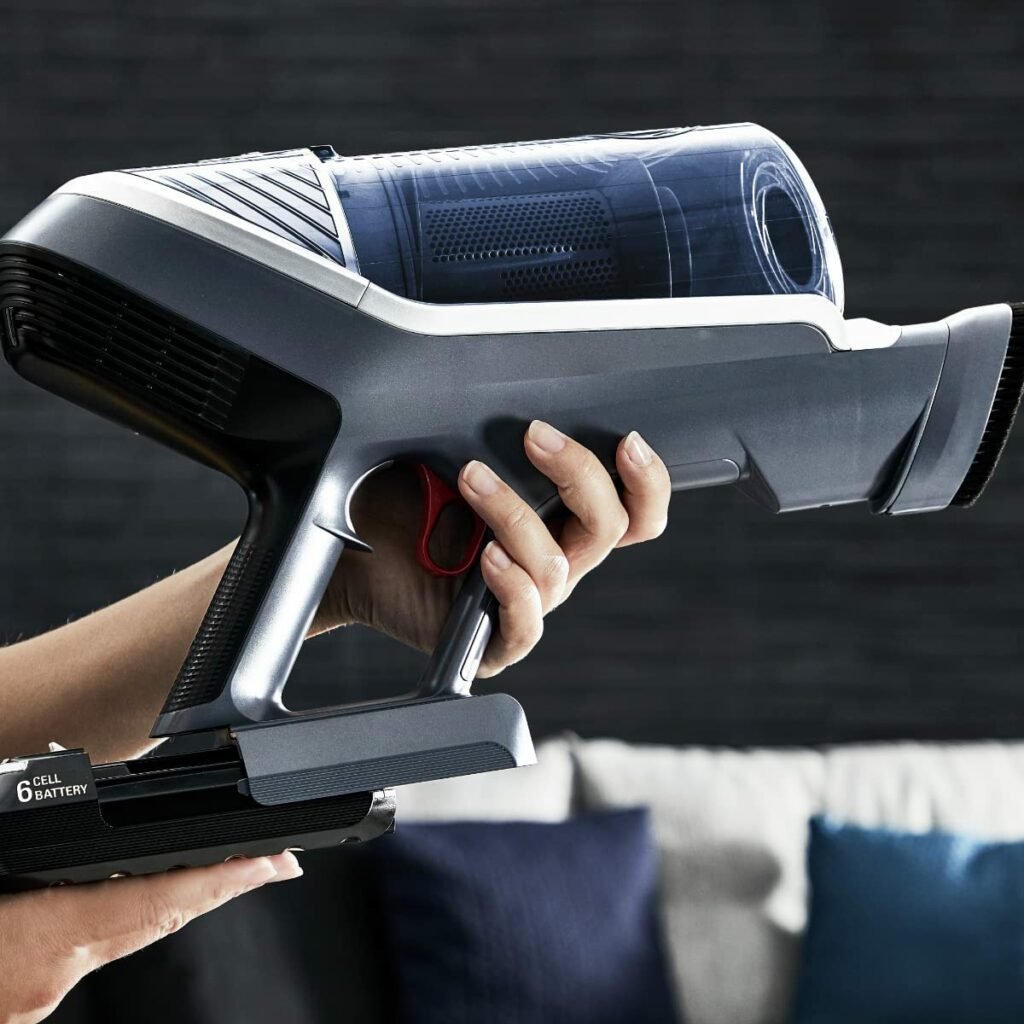 - Plus grande autonomie sans câble : avec 6 cellules et 22 V de puissance, la batterie d’extraction facile assure un nettoyage puissant et constant jusqu’à 45 minutes (vous pouvez augmenter l’autonomie jusqu’à 1 h 10 min; avec une batterie supplémentaire)