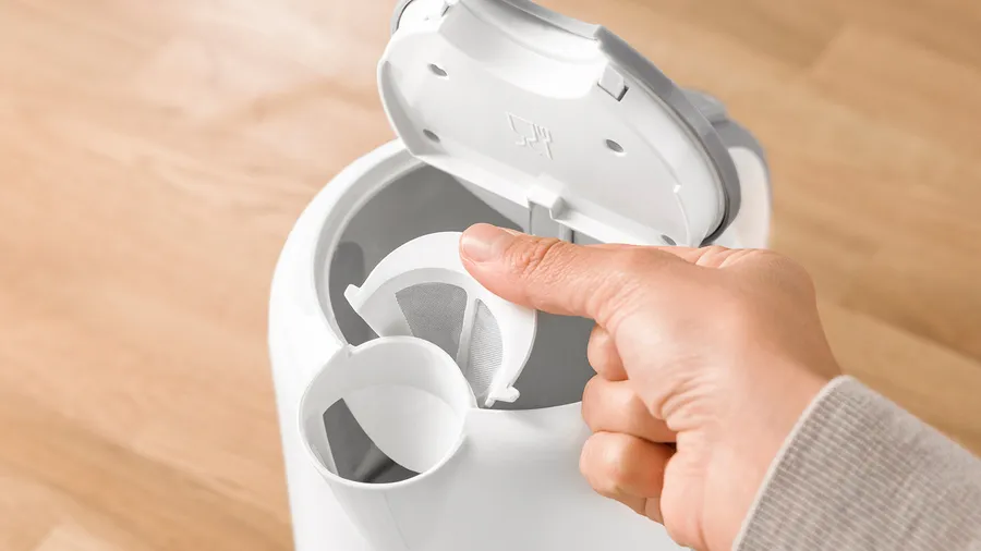 - Facile à nettoyer avec son ouverture extra large et son filtre anticalcaire amovible.
