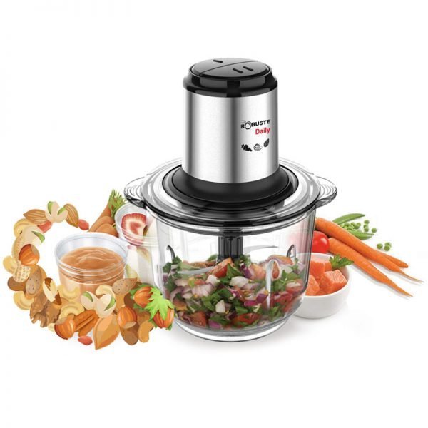 Robuste Hachoir – DAILY- 4 Lames 2L – 400 W – Noir Le hachoir robuste DAILY est Facile à utiliser, efficace et puissante, la Moulinette mixe et hache en quelques secondes toutes vos préparations. Avec une puissance de 400 w et sa lame en forme de « sabre », la moulinette parvient à hacher parfaitement vos ingrédients des plus délicats aux plus durs. Son bol transparent, d’une capacité de 2l vous permet d’observer directement le résultat obtenu Pour des résultats en un tour de main, choisissez la moulinette..